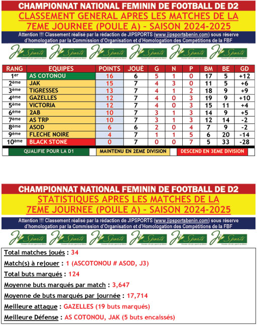 Cotonou (16 points, GD : +12) ne