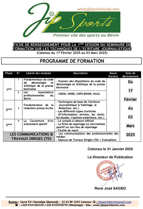 JIPSPORTSBENIN.COM qui vise à initier