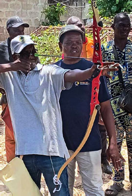 « Je suis satisfait de la participation des journalistes et reporters sportifs qui sont venus à la formation pour le fait que, qu’après la théorie, ils ont pris part à la formation pratique. Ils ont appris à tirer à l’arc et ils savent désormais comment ça se passe, de façons qu’ils ne sont plus des néophytes qui vont mal parler. Parce que même s’ils ont l’intention de bien faire, quand on n’est pas renseigné, on ne peut pas rendre compte fidèlement de ce que l’ont voit ». |