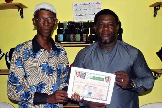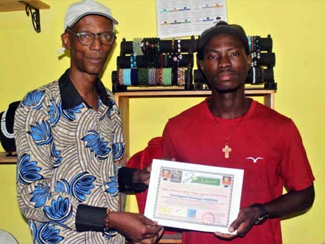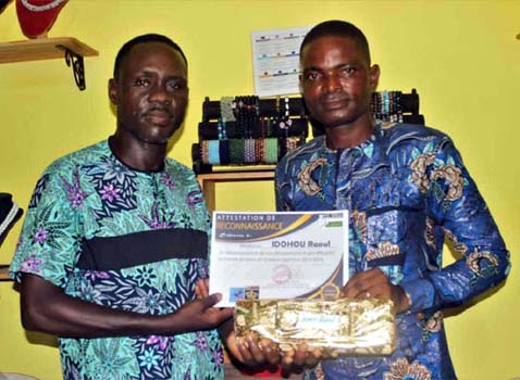 international béninois (à droite) recevant son