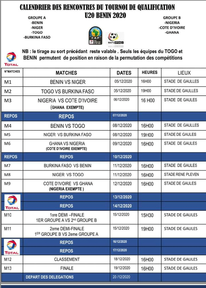 Résultats du Tournoi qualificatif U20 de l'Ufoa B