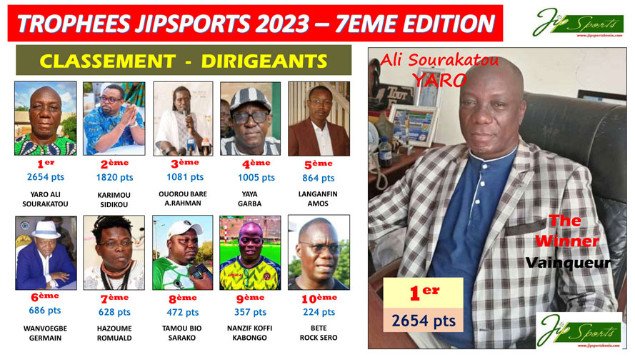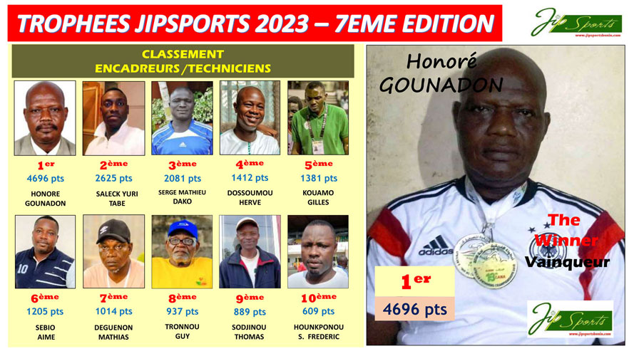 • Adresse : 03 BP 2253 - Cotonou (Bénin) • Email : tropheeipsports@gmail.com - Téléphone : (+229) 01 97 07 87 70 / 01 41 38 24 10