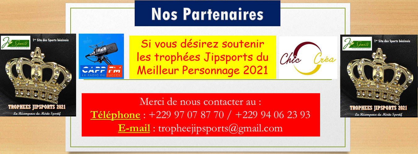 • Adresse : 03 BP 2253 - Cotonou (Bénin) • Email : tropheeipsports@gmail.com - Téléphone : (+229) 01 97 07 87 70 / 01 41 38 24 10