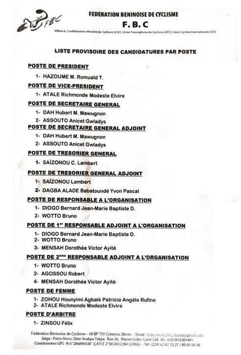 gestion du cyclisme béninois,