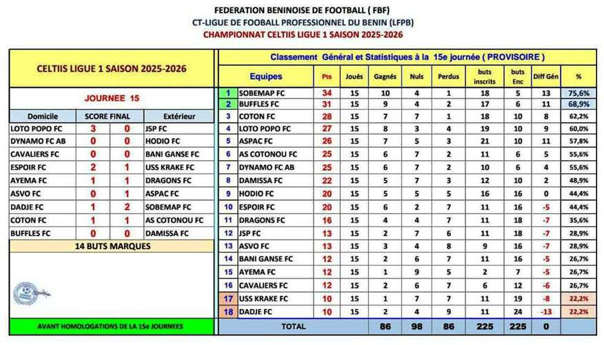 MATCHS DE LA 15ÈME JOURNÉE DE LA CELTIIS