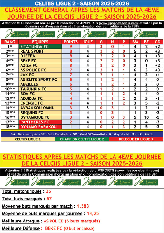 LES MATCHS DE LA 4EME JOURNEES