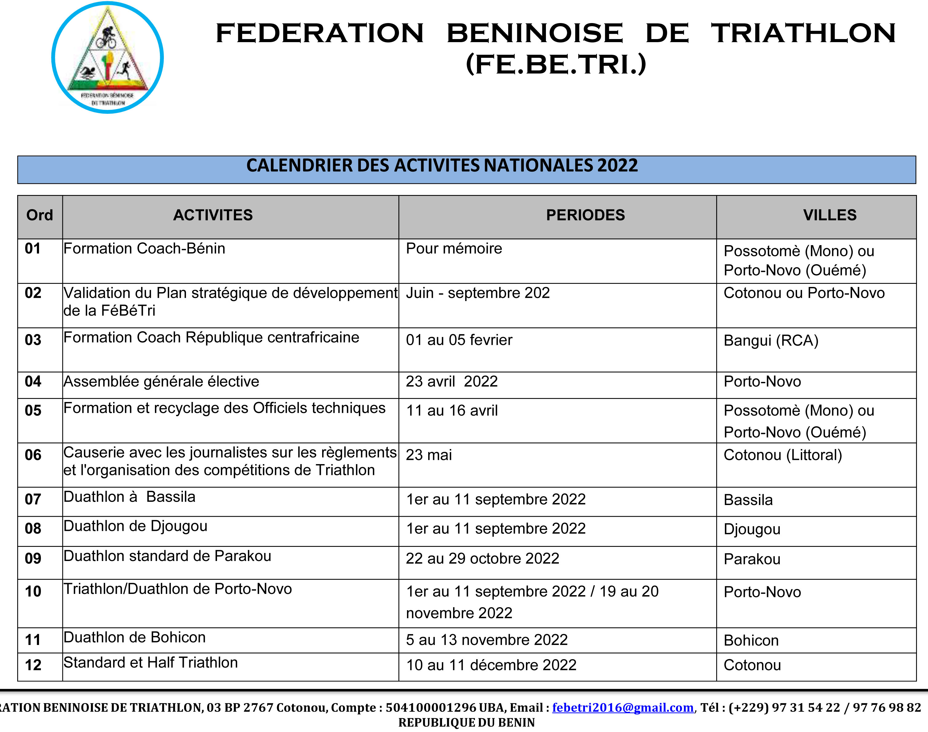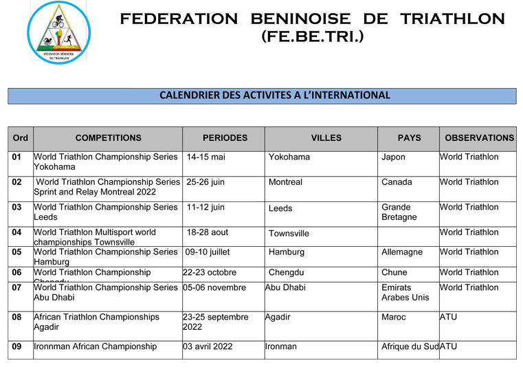 duathlon standard de Parakou.