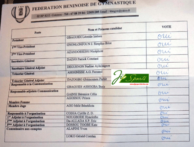 de la Fédération béninoise de Gymnsatique (Febegym)