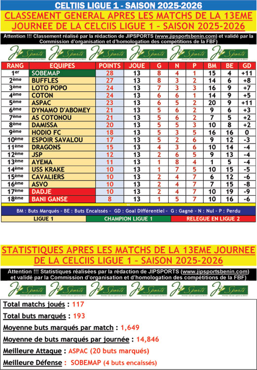 STATISTIQUES DE LA CELTIIS LIGUE 1 APRÈS LES