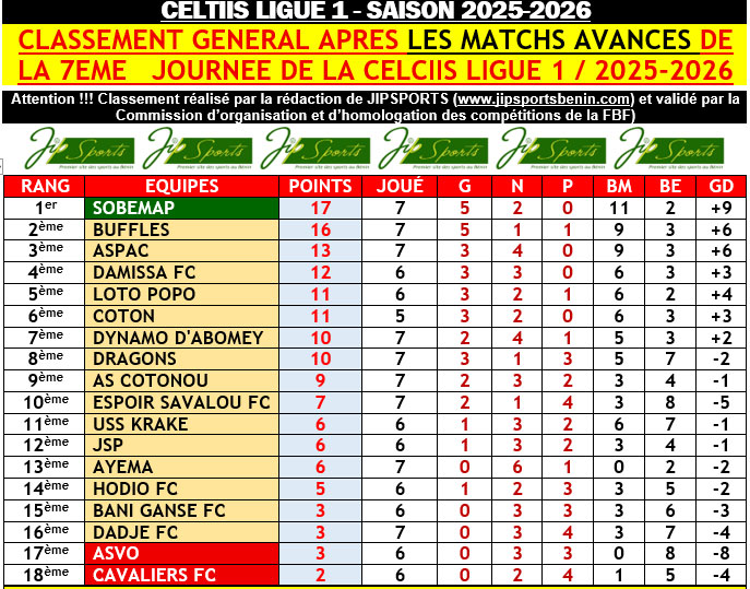 LES MATCHS AVANCES DE LA 7EME JOURNEE