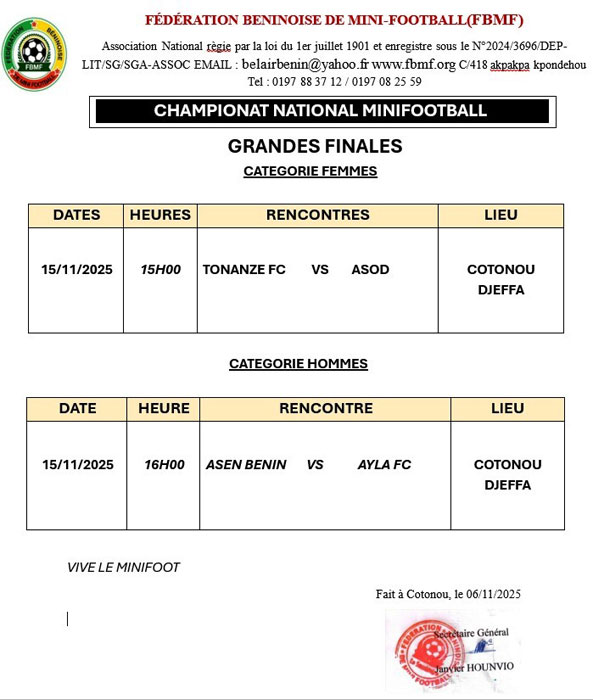 minifootball béninois, où toutes